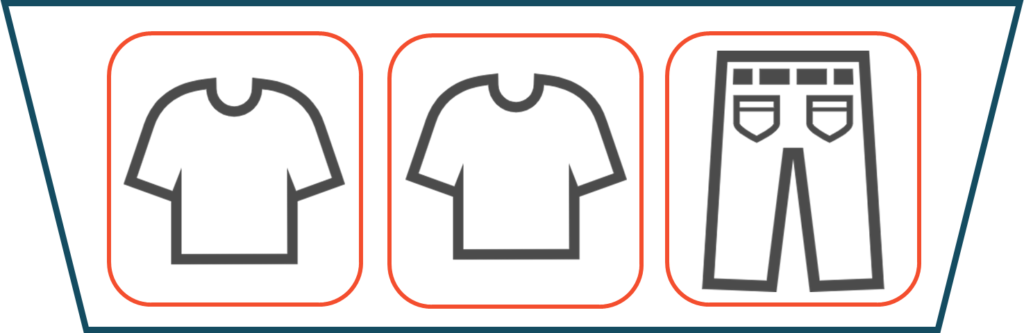 ユーザーが「Tシャツを2枚、デニムを1枚」計3つの商品をまとめて購入した場合