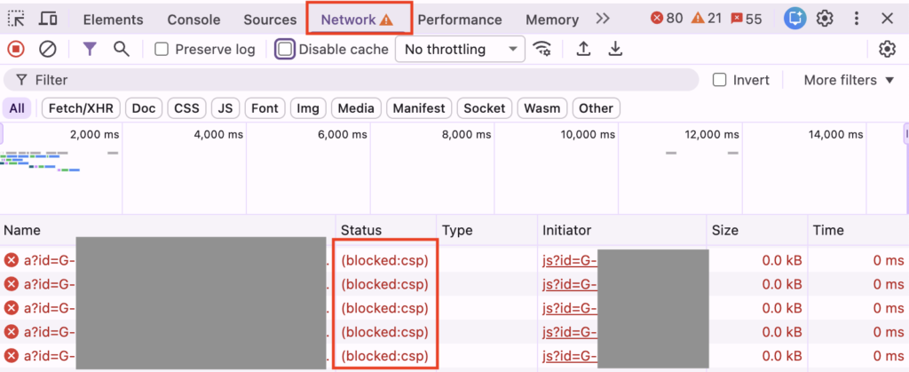 ↑Networkタブで (blocked:csp) となっている例