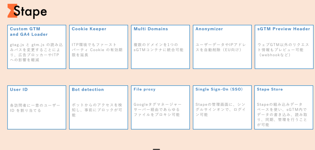 Stape は、様々な外部サービスとの連携機能も充実しています。
