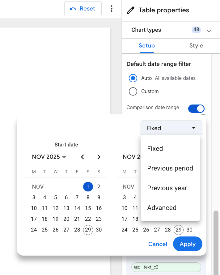Looker Studio does not currently offer anything similar. Users are limited to the chart types the report author has already published, which reduces flexibility—especially when different stakeholders need different visual styles.