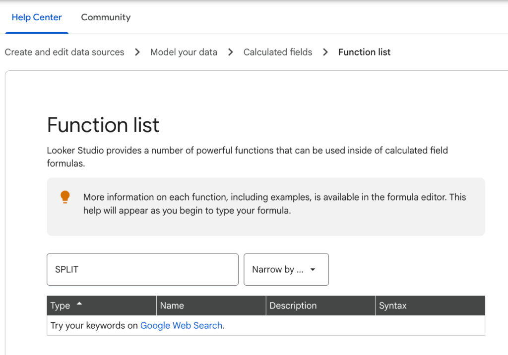 To my surprise there is no SPLIT function in Looker. There are workarounds using RegEx, Google Sheets, BigQUery etc. but those are not straightforward.