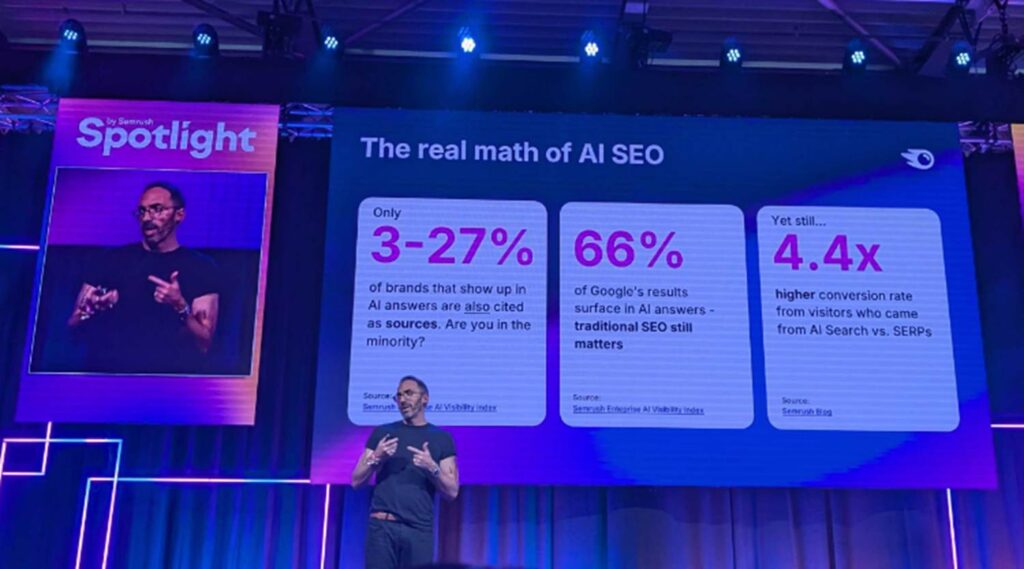 AI検索の現状と今後というセッションでSemrushのAndrew Warden氏 が直近2年のSEO業界の激しい変化について話しました。