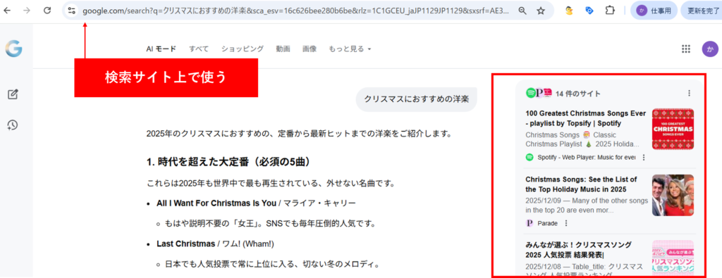 先ほども書いた通り、検索サイトが提供するAIモードなどは検索結果とドメインが変わりません。