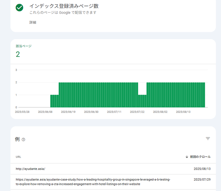 8/25 新サイトは2ページしかインデックスされず