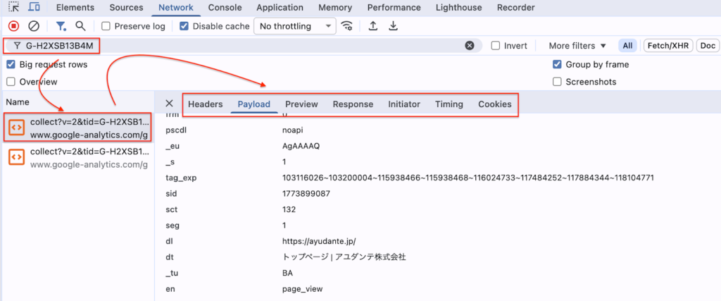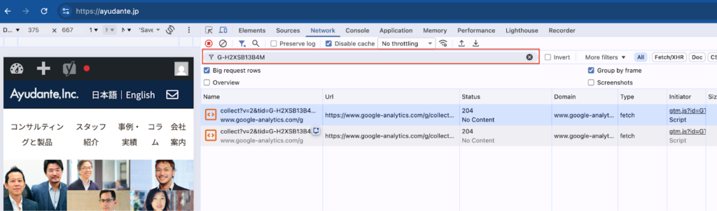 - 広告やGA4の計測を確かめたいときに頼れるのが「Network」
